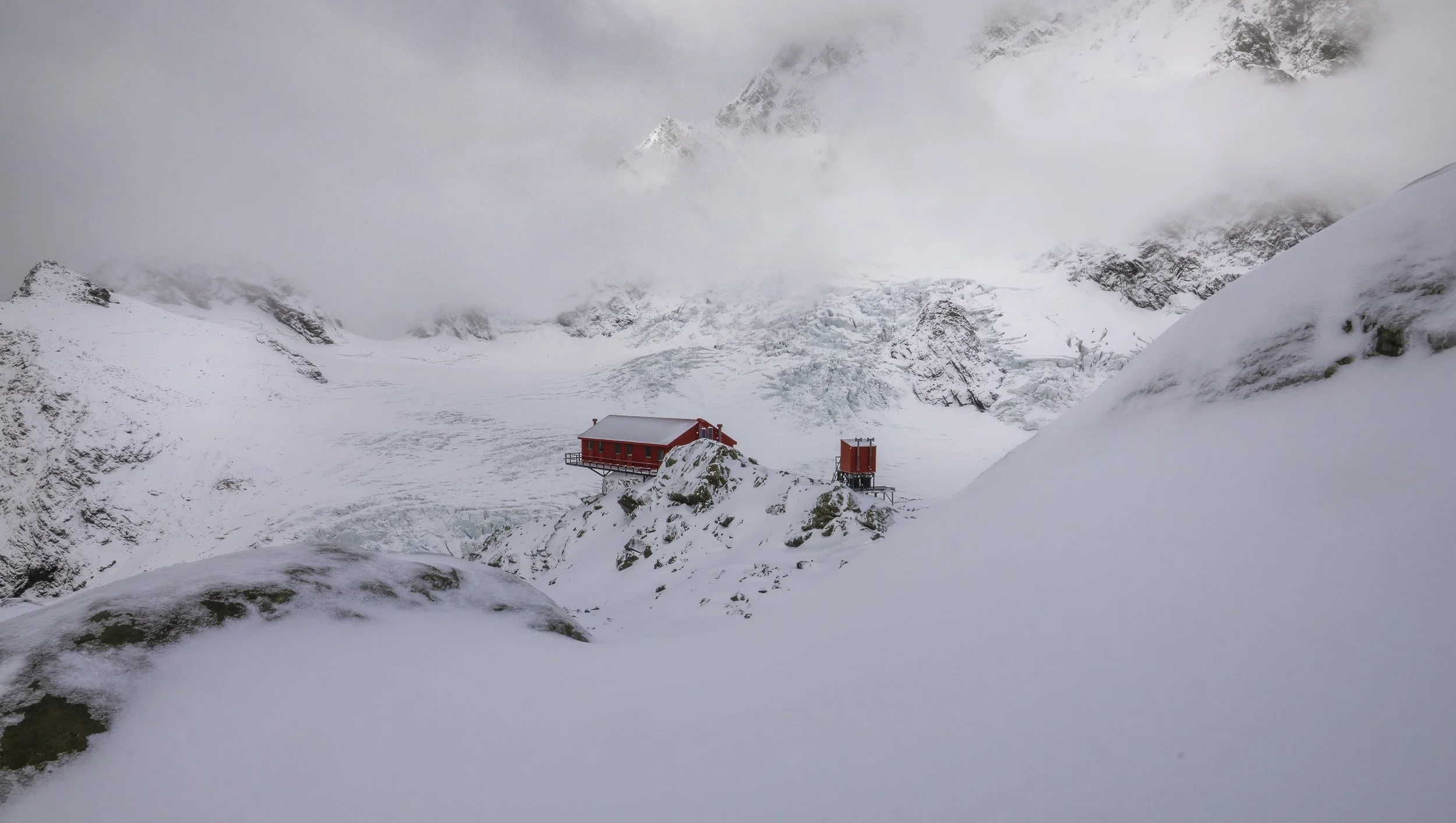 It arrived in the early hours, sneaking in with a low moan that grew into a full-throated howl. By morning, the plateau was buried beneath a metre and a half of fresh snow. Clean. Absolute. Unmapped. We stepped outside and the world had changed.