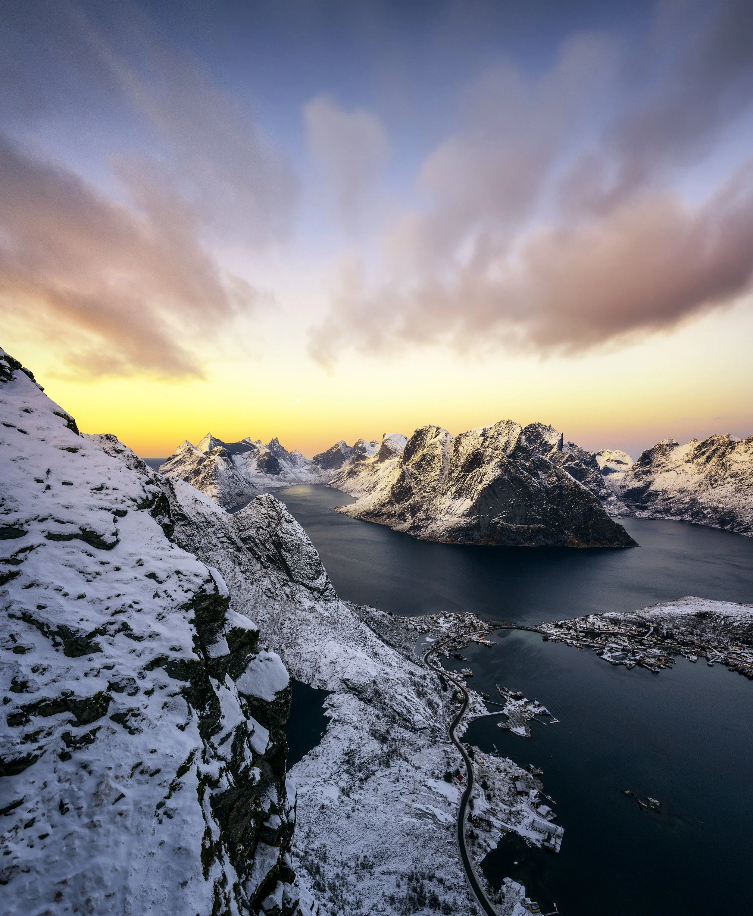 Winter in the Arctic Circle is an experience like no other. The Reinebringen hike in Norway, located in the heart of the Lofoten Islands, offers one of the most breathtaking views imaginable. As a panoramic landscape photographer, I’m always on the hunt for locations that offer unique perspectives, and Reinebringen, with its dramatic winter landscapes and surreal lighting, was an adventure I couldn’t resist.